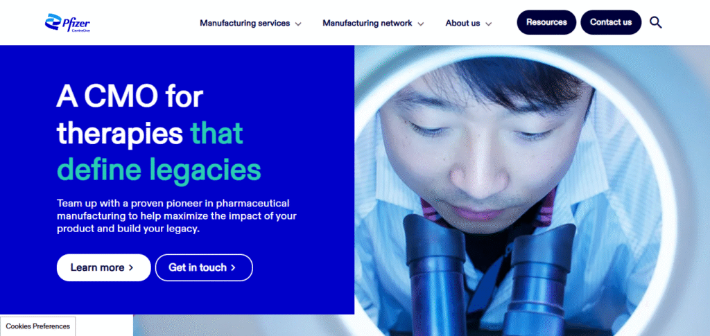 Pfizer CentreOne serves as Pfizer’s CDMO (Contract Development and Manufacturing Organization). It plays a pivotal role in custom pharma production, making it a unique part of the Top Pharmaceutical Companies in New York.